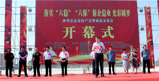 8月28日上午,西華縣委統(tǒng)戰(zhàn)部、縣工商聯(lián)、縣“兩新”組織黨工委聯(lián)合在縣群眾文化體育廣場(chǎng),舉行做好“六穩(wěn)”落實(shí)“六?!薄氨F蠓€(wěn)業(yè)、光彩圓夢(mèng)”2020年房企展覽會(huì)暨商品交易會(huì)開幕式??h委常委、常務(wù)副縣長(zhǎng)王獻(xiàn)超,縣政協(xié)副主席宋廠院等領(lǐng)導(dǎo)出席,縣住建局、縣城市管理局、縣市場(chǎng)監(jiān)管局、縣工商聯(lián)、縣教體局、縣“四館” 建設(shè)指揮部辦公室等有關(guān)部門領(lǐng)導(dǎo)及河南永秀置業(yè)有限公司、周口凱盛實(shí)業(yè)有限公司等多家房地產(chǎn)企業(yè)參加了開幕儀式。