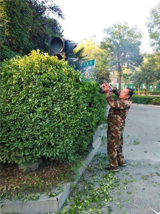 8月28日上午,沈丘縣城管局園林綠化工人克服高溫和蚊蟲叮咬,為尚德路上兩側(cè)綠化帶修枝整葉,清理雜草,精心打扮后,整條路更加整潔美麗。據(jù)悉,為全面提高該縣城市綠化管理水平,提升城市形象,連日來,園林綠化大隊(duì)以“城鎮(zhèn)環(huán)境大整治、城鎮(zhèn)面貌大提升”秋季集中攻堅(jiān)行動(dòng)為抓手,強(qiáng)勢推進(jìn)園林綠化環(huán)境整治。