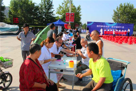 儀式現(xiàn)場,多家單位負責(zé)人宣讀了“提升健康素養(yǎng) 樂享銀齡生活”倡議書。儀式結(jié)束后,現(xiàn)場舉行大型義診、健康咨詢、文藝表演等活動。市、區(qū)醫(yī)療單位設(shè)立13個咨詢服務(wù)臺,圍繞“提升健康素養(yǎng) 樂享銀齡生活”活動主題,現(xiàn)場普及老年健康知識,通過擺放健康知識展版、發(fā)放健康宣傳折頁、提供健康咨詢和現(xiàn)場義診服務(wù)等形式,為老年人提供量血壓、測血糖、測視力、等健康服務(wù)。針對常態(tài)化疫情防控中對老年人的生活照顧、健康管理、醫(yī)養(yǎng)結(jié)合、慢性病預(yù)防等內(nèi)容,結(jié)合老年人特點,圍繞營養(yǎng)膳食、運動健康、心理健康、合理用藥等方面展開科普宣傳指導(dǎo),普及老年健康科學(xué)知識和老年健康相關(guān)政策。叮囑老人做好居家衛(wèi)生,出門戴口罩,做好個人防護,并針對老年人常見的高血壓、糖尿病、冠心病等,給予健康評估和健康指導(dǎo),讓廣大老年人切身感受到社會的關(guān)懷和溫暖,提高了老年人的健康素養(yǎng),收到了良好的社會效果。