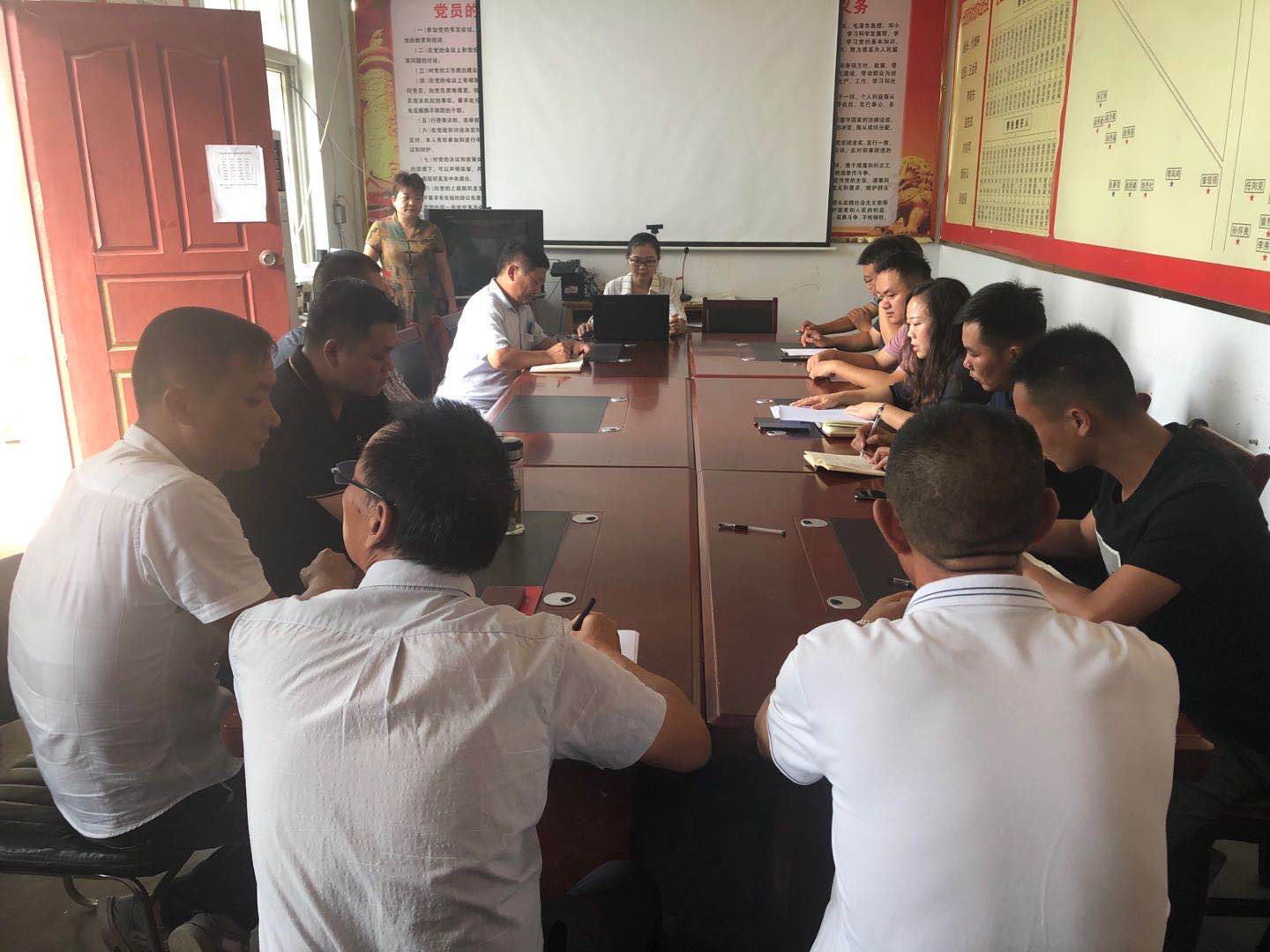 課前,縣紀(jì)委常委、城郊鄉(xiāng)七里河行政村重點(diǎn)村居集中整治工作組組長(zhǎng)劉春霞領(lǐng)學(xué)了黨的十九屆四中全會(huì)精神及《黨章》。隨后,還通報(bào)了工作組入駐七里河行政村以來(lái)工作情況。