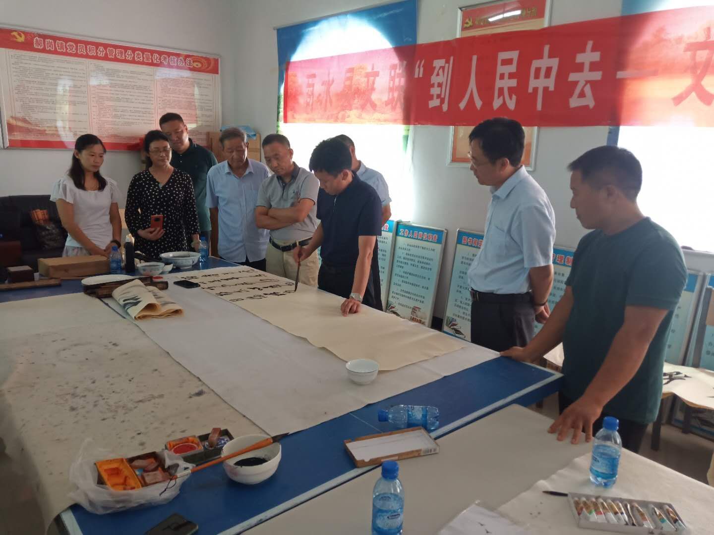 8月28日,市書(shū)法家協(xié)會(huì)、商水縣文聯(lián)組織市縣書(shū)法家協(xié)會(huì)、美術(shù)協(xié)會(huì)文藝志愿者到郝崗鎮(zhèn)舉辦“到人民中去--文藝志愿服務(wù)鄉(xiāng)村行”活動(dòng)。周口市書(shū)法家協(xié)會(huì)主席李珂、商水縣文聯(lián)主席劉秋玲、商水縣書(shū)法家協(xié)會(huì)主席趙世貴等參加此次活動(dòng)。