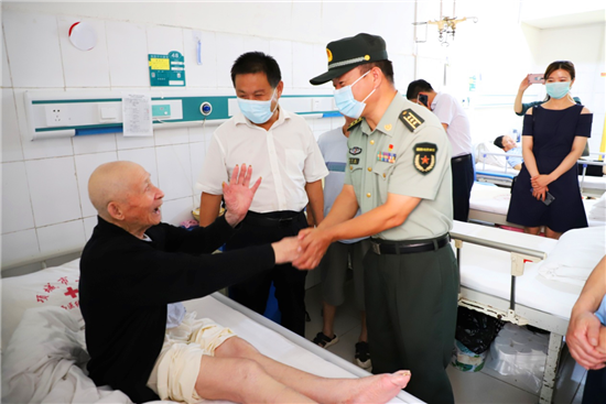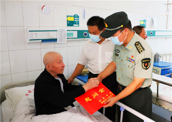 抗戰(zhàn)老兵是中國(guó)反法西斯戰(zhàn)爭(zhēng)的活化石,是我們中華民族的財(cái)富和瑰寶。抗戰(zhàn)勝利紀(jì)念日前夕的9月1日上午,項(xiàng)城市人武部部長(zhǎng)矯百成在市退役軍人事務(wù)局牛新中局長(zhǎng)等人的陪同下,一起走進(jìn)項(xiàng)城市衛(wèi)生學(xué)校的病房,看望目前項(xiàng)城僅健在的94歲高齡抗戰(zhàn)老兵王建義。