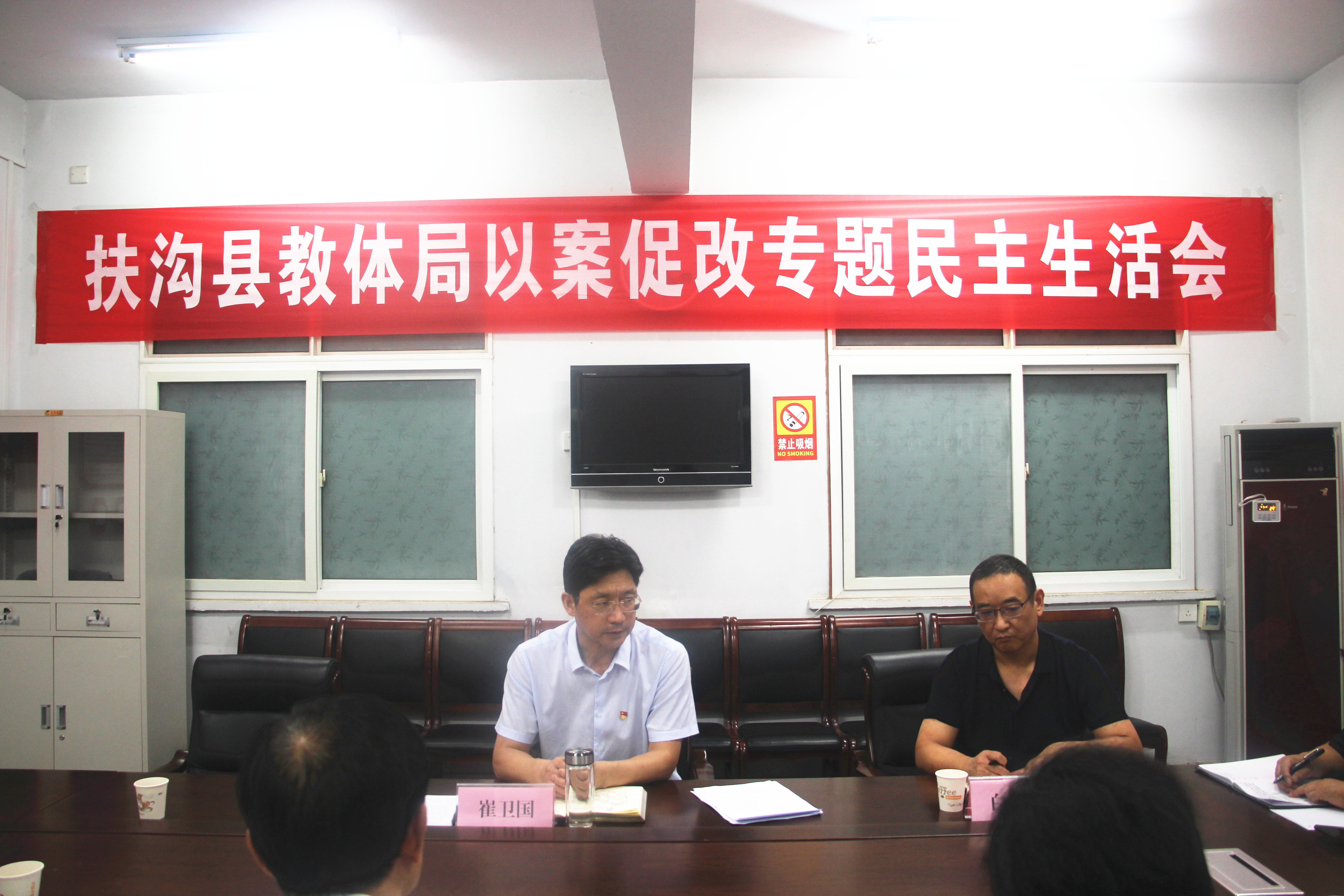 9月2日,扶溝縣教體局局黨組召開以案促改專題民主生活會??h長崔衛(wèi)國,縣紀委副書記、監(jiān)委副主任白建偉到會指導,縣紀委監(jiān)委派駐第六紀檢監(jiān)察組高祥雨同志列席會議,會議由縣教體局黨組書記、局長翟連生主持。