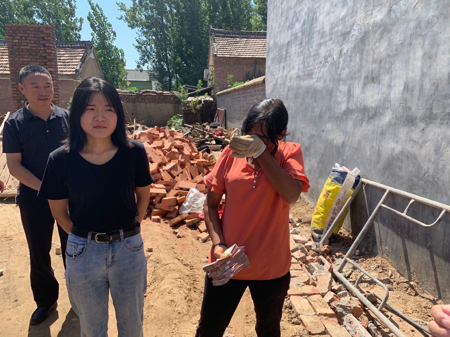 工作人員把所捐的款點清碼好后,方凱便組織有關人員驅車前往朱亞萍的家,把片片愛心送到這個困難的家里。西華縣委宣傳部常務副部長寇二勇獲悉情況后,也立即驅車趕往,為方凱的愛心行動助力。東王營鄉(xiāng)黨委領導、朱營村支書等在村頭迎接愛心人士的到來。
