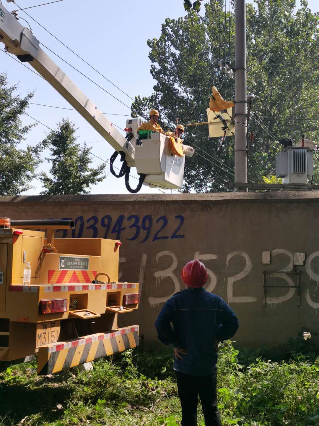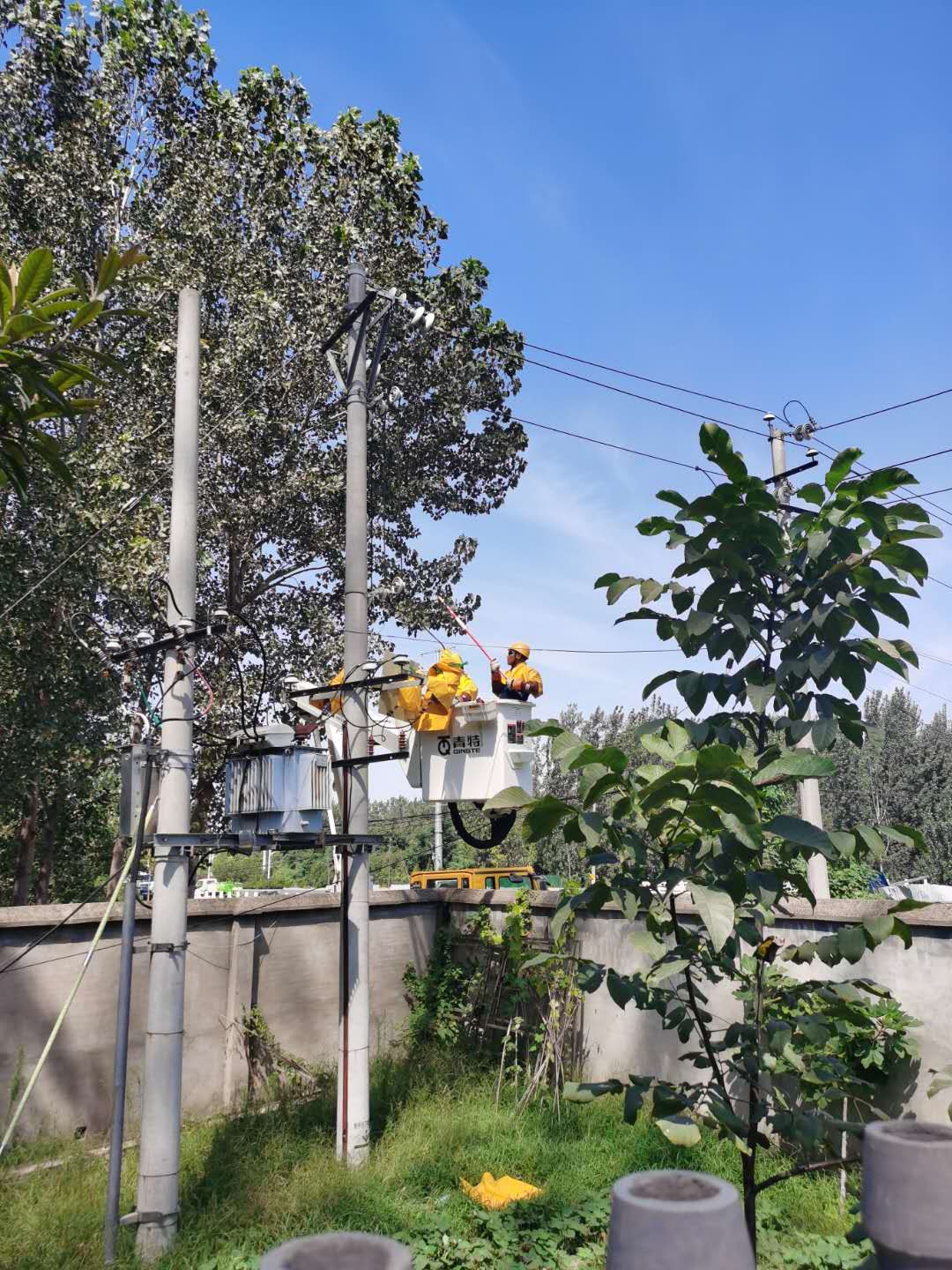 9月5日中午,“秋老虎”發(fā)威,燠熱難耐。國網(wǎng)西華縣供電公司城關(guān)供電所工作人員穿著長(zhǎng)袖工作服,頭戴安全帽,冒酷暑進(jìn)行高空搶修作業(yè)。