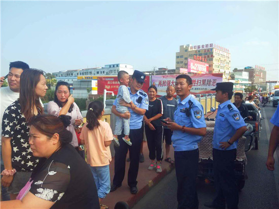 2020年9月1日16時(shí)許,特巡警大隊(duì)青年突擊隊(duì)隊(duì)長(zhǎng)李驍帶隊(duì),沿潁河大道向南巡邏至沈丘大閘南頭時(shí),一群眾抱著一個(gè)兩三歲的男孩慌慌張張前來(lái)求助,該男童與父母走散,大哭不止。