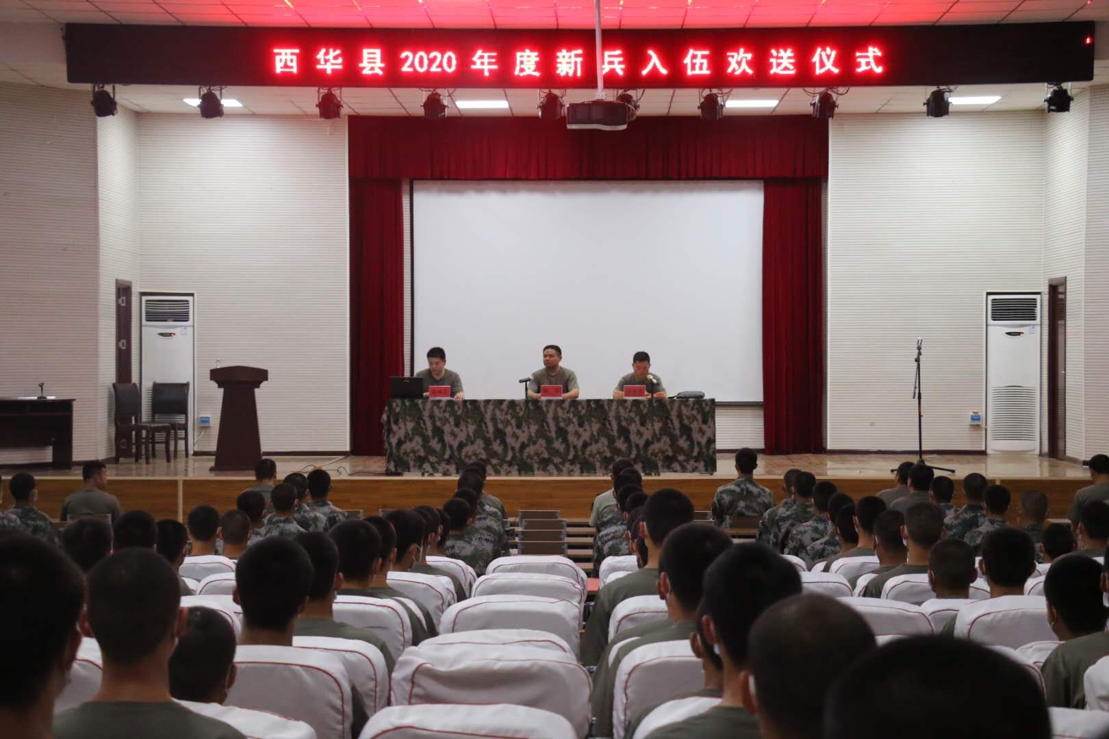 9月10日下午,西華縣在該縣新兵封閉隔離點(diǎn)、縣教師進(jìn)修學(xué)校報(bào)告廳,隆重舉行2020年首批入伍新兵歡送會(huì)。42名即將奔赴北部戰(zhàn)區(qū)某旅的新兵胸帶大紅花,精神飽滿,士氣高昂。
