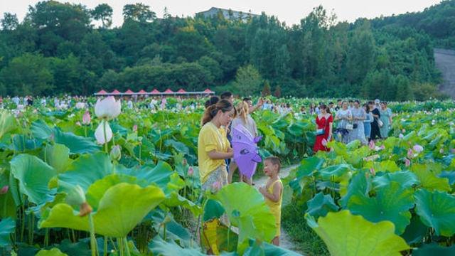 金秋九月,豐收在望。新縣泗店鄉(xiāng)陸灣村籽蓮產(chǎn)業(yè)基地荷紅柳綠、蓮蓬滿池,村黨支部書記方賢文正領著村民在荷花池內(nèi)忙著采摘成熟的蓮蓬,歡聲笑語滿溢荷塘。