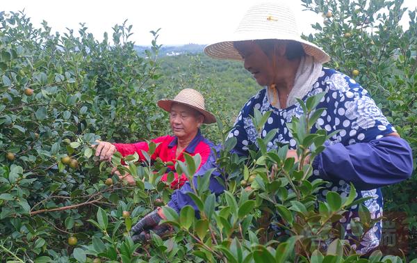 走上觀景臺登高遠眺,山挨著山、嶺連著嶺,油茶林綿延起伏,好像綠色的海洋,隨風掀起幸福的波浪。