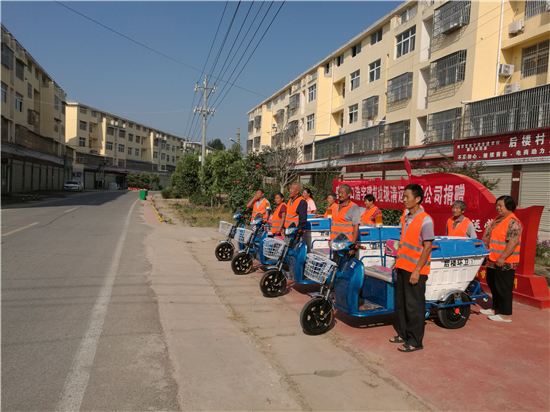 9月12日上午,西華縣西華營(yíng)鎮(zhèn)后樓行政村迎來(lái)了一件大喜事,周口浩宇建筑垃圾清運(yùn)有限公司董事長(zhǎng)陳雨生一行一大早來(lái)到西華營(yíng)鎮(zhèn)后樓行政村,為后樓村捐贈(zèng)價(jià)值兩萬(wàn)余元嶄新的環(huán)衛(wèi)垃圾清運(yùn)電動(dòng)車4臺(tái),以全力打造美麗鄉(xiāng)村,改善人居環(huán)境,為決戰(zhàn)決勝脫貧攻堅(jiān)獻(xiàn)上了一份愛心。鎮(zhèn)人大主席姚衛(wèi)民、后樓行政村黨支部書記高運(yùn)動(dòng)出席捐贈(zèng)儀式。