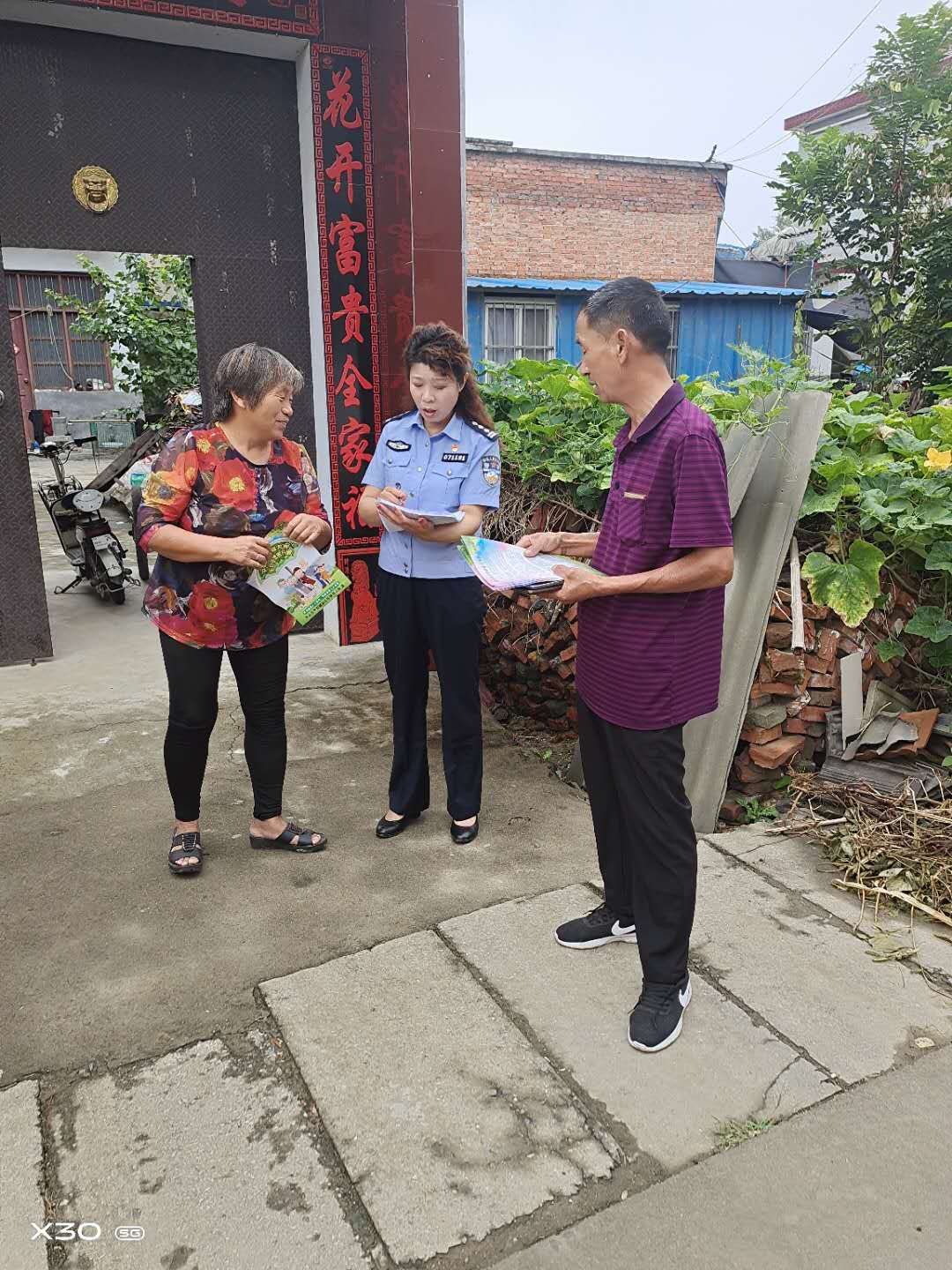 “沒(méi)啥困難,村里治安挺好的……”崔文明告訴李留濤,“近年來(lái),沈丘群眾的生活越來(lái)越好了,大伙都忙著外出掙錢去了,哪還有閑空慪氣呀?!币幌捳f(shuō)得大伙兒都笑了?! 讉€(gè)鄰居看穿著制服的干警來(lái)了,圍過(guò)來(lái)了解情況。李留濤及時(shí)將攜帶的明白紙發(fā)給大家,并向群眾進(jìn)行交流了解情況?! 拔覀冎?,鄉(xiāng)里有宣傳車天天宣傳?!贝謇飰ι弦菜⑸稀畳吆诔龕骸?#39;建設(shè)平安沈丘等標(biāo)語(yǔ)?!薄鞍炒宄闪⒂醒策夑?duì),現(xiàn)在社會(huì)治安可好了?!贝蠹夷阋谎晕乙徽Z(yǔ)說(shuō)起了村里的社會(huì)治安情況?! ∵@是沈丘縣開(kāi)展“千名干警進(jìn)萬(wàn)家”暨公眾安全感執(zhí)法滿意度雙提升活動(dòng)的一個(gè)剪影?! ∽?月1日以來(lái),這樣情景在沈丘縣廣大農(nóng)村每天都在上演。 為進(jìn)一步提升全縣公眾安全感和政法機(jī)關(guān)執(zhí)法滿意度,沈丘在全縣范圍內(nèi)開(kāi)展了“千名干警進(jìn)萬(wàn)家”暨公眾安全感執(zhí)法滿意度雙提升活動(dòng)。活動(dòng)自9月1日起一直持續(xù)到年底。 來(lái)自全縣政法系統(tǒng)的1000名干部,走出機(jī)關(guān)走進(jìn)農(nóng)民家中,開(kāi)展“入戶大走訪、平安大宣傳、治安大防控、亂點(diǎn)大整治、服務(wù)大提升”活動(dòng),暢通社情民意、宣傳法律法規(guī)、化解矛盾糾紛、摸排黑惡線索……以實(shí)際行動(dòng)傾力打造平安沈丘、法治沈丘。