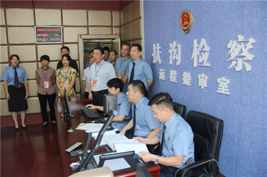 調(diào)研組一行參觀了扶溝縣檢察院優(yōu)化營(yíng)商環(huán)境、服務(wù)企業(yè)發(fā)展以及公益訴訟、掃黑除惡、脫貧攻堅(jiān)、未成年刑事檢察、黨建等工作展板,實(shí)地察看了檢察院遠(yuǎn)程提審等“三遠(yuǎn)一網(wǎng)”平臺(tái)使用情況、案管大廳、未成年人檢察工作影像資料、心理咨詢室和榮譽(yù)室。