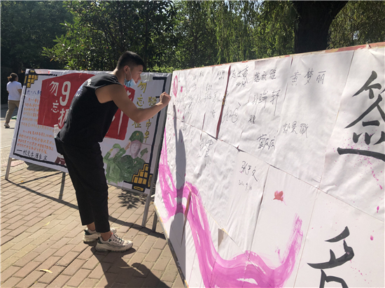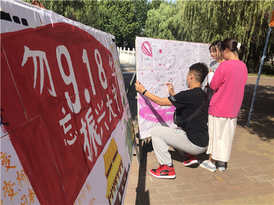 記者在河南科技職業(yè)大學(xué)看到,學(xué)校團(tuán)委組織各學(xué)院團(tuán)總支開展“銘記九一八勿忘國恥”主題團(tuán)日活動(dòng),各級(jí)團(tuán)組織通過主題教育班會(huì)、簽名儀式等活動(dòng)重溫“九一八”歷史事件。河南科技職業(yè)大學(xué)團(tuán)委副書記劉曉娜表示,通過回顧這段歷史,同學(xué)們深刻體悟到了中華民族曾經(jīng)經(jīng)受的苦難和今天幸福生活的來之不易,以此激發(fā)同學(xué)們的責(zé)任感和愛國熱情,進(jìn)一步增強(qiáng)青年學(xué)子們的愛國主義意識(shí),讓大家銘記歷史,不忘初心、牢記使命,堅(jiān)定青年發(fā)奮圖強(qiáng)的理想信念,為實(shí)現(xiàn)中華民族偉大復(fù)興的中國夢貢獻(xiàn)青春力量。