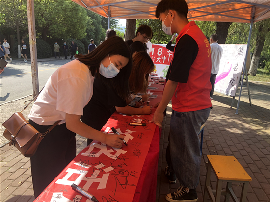活動(dòng)結(jié)束后,同學(xué)們紛紛表示,要堅(jiān)定擁護(hù)中國共產(chǎn)黨的領(lǐng)導(dǎo),勤奮學(xué)習(xí)、嚴(yán)于律己,用實(shí)際行動(dòng)肩負(fù)起實(shí)現(xiàn)中華民族偉大復(fù)興的歷史重任。圖為學(xué)生進(jìn)行簽名。