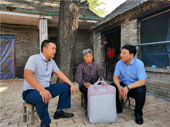 上午9時(shí)許,張永政一行攜帶大米、礦泉水、紙抽、蠶絲被等慰問品來到王國輝家,對(duì)王國輝獲得榮譽(yù)表示祝賀,并與王國輝的母親切交談。張永政向王國輝母子傳達(dá)了省信用聯(lián)社黨委書記王勇的親切慰問。張永政說:“前不久,省信用聯(lián)社黨委書記王勇來周口調(diào)研時(shí),十分掛念王國輝的家庭和村集體生產(chǎn)經(jīng)營情況,專門囑托他要向王國輝學(xué)習(xí)并前往慰問,要與田營村搞好金融對(duì)接,開啟黨建聯(lián)盟,全力做好金融后盾?!?/p>