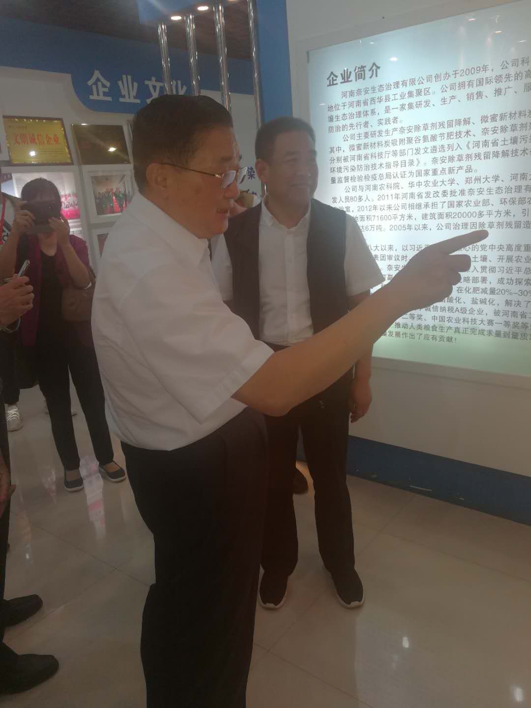 9月19日,中國老促會常務(wù)會長曾廣超、動員部長張芝元等一行,在河南省老促會執(zhí)行會長王群、副秘書長吳海明,周口市老促會會長穆仁先、秘書長王五靈、副秘書長趙永光,西華縣老促會會長張保亭、西華縣政協(xié)主席郭峰等領(lǐng)導(dǎo)陪同下,到西華縣全國人大代表黨永富興辦的奈安集團(tuán)公司,調(diào)研實(shí)施化肥農(nóng)藥減量、防治土地污染、保證糧食安全的措施辦法等,旨在全國革命老區(qū)普遍推廣應(yīng)用。