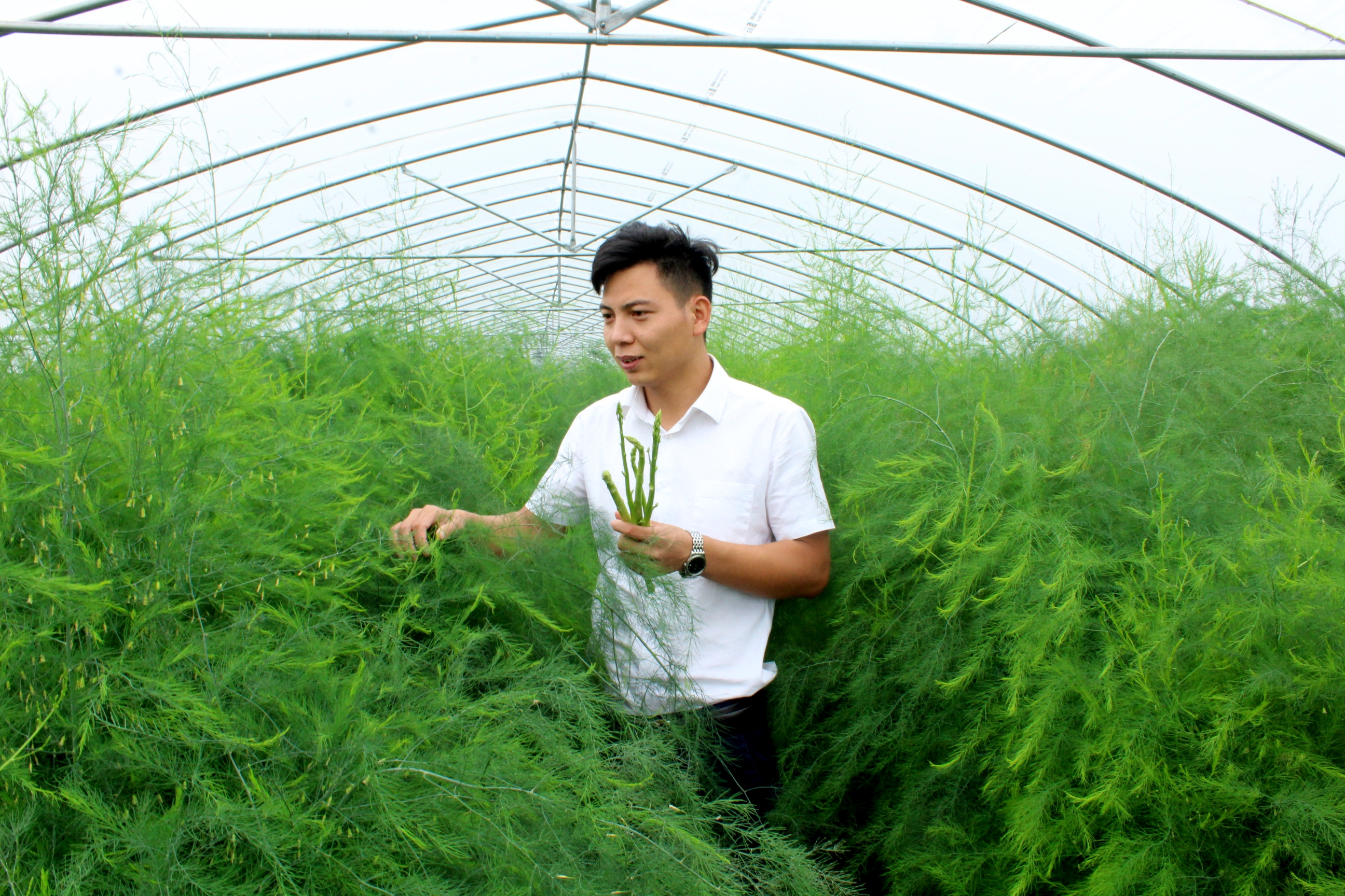 今年30歲的王永振,是皮營(yíng)辦事處鄺橋社區(qū)劉莊村人,2013年大學(xué)畢業(yè)后返鄉(xiāng)創(chuàng)業(yè),籌集資金10多萬(wàn)元,流轉(zhuǎn)土地60多畝種植蘆筍,逐漸走上致富道路。