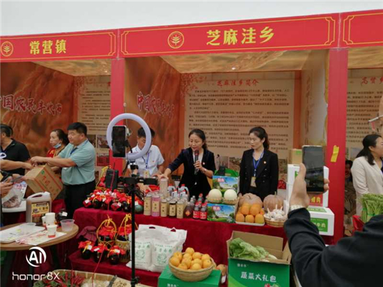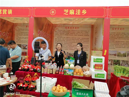 春種秋收,銀城大地,五谷豐登。9月22日上午,太康縣以“五谷豐登慶豐收、六村共建新家園”為主題的“2020年中國農(nóng)民豐收節(jié)”慶?;顒釉诳h人民廣場隆重舉行。芝麻洼鄉(xiāng)黨委書記范慧萍在慶祝豐收節(jié)現(xiàn)場,利用皮箱楊村電商平臺現(xiàn)場直播帶貨,推介該鄉(xiāng)名、優(yōu)、特農(nóng)產(chǎn)品,成為活動的一大亮點。圖為直播帶貨現(xiàn)場。
