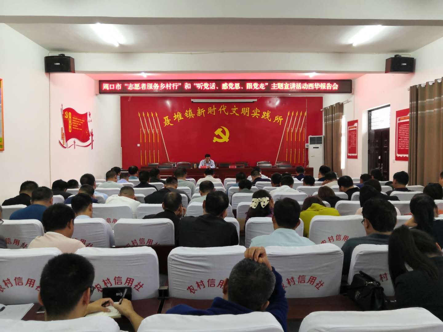 9月23日上午,周口市“志愿服務(wù)鄉(xiāng)村行”和“聽黨話、感黨恩、跟黨走”主題宣講活動西華報告會在聶堆鎮(zhèn)新時代文明實踐所舉行。報告會邀請沈丘縣脫貧攻堅領(lǐng)導(dǎo)小組辦公室主任、沈丘縣扶貧開發(fā)辦公室主任陳曉東作專題報告。鎮(zhèn)政府全體干部、駐村第一書記和工作隊長、各行政村黨支部書記參加報告會。聶堆鎮(zhèn)黨委副書記、鎮(zhèn)長劉輝主持報告會。