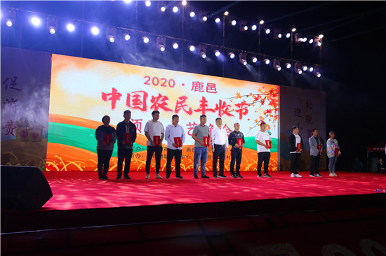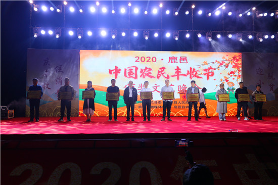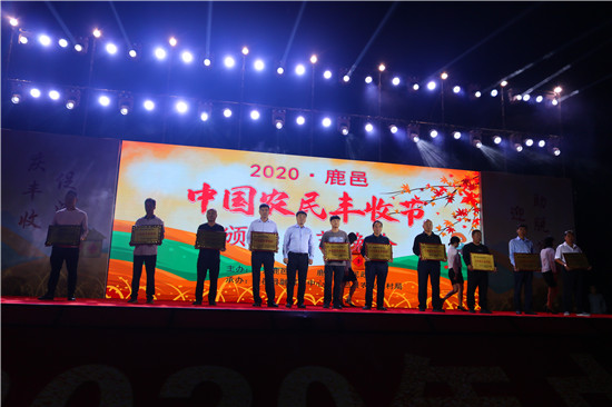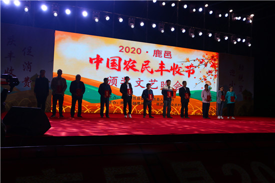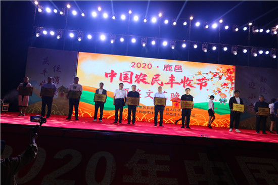 9月22日晚,由中共鹿邑縣委、鹿邑縣人民政府主辦的2020年鹿邑縣農(nóng)民豐收節(jié)文藝晚會(huì)在鹿邑縣文化中心廣場(chǎng)舉辦。晚會(huì)現(xiàn)場(chǎng)頒布了鹿邑縣“十佳家庭農(nóng)場(chǎng)”“十佳農(nóng)民合作社”“十佳特色農(nóng)產(chǎn)品品牌”“十佳返鄉(xiāng)創(chuàng)業(yè)脫貧致富帶頭人”“十佳脫貧致富先進(jìn)個(gè)人”五項(xiàng)獎(jiǎng)項(xiàng),40名新型農(nóng)民(農(nóng)場(chǎng)、合作社)代表和10個(gè)特色農(nóng)產(chǎn)品品牌獲殊榮,他們用行動(dòng)和產(chǎn)品充分展示了全縣現(xiàn)代農(nóng)業(yè)在過(guò)去一年中取得的輝煌成果。縣領(lǐng)導(dǎo)雷申、楊所超、侯自峰、王曉征、張國(guó)慶、肖西國(guó)等出席豐收節(jié)晚會(huì),并為獲獎(jiǎng)?wù)哳C發(fā)榮譽(yù)證書和獎(jiǎng)牌。