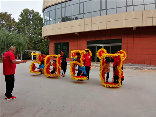 臨近國慶節(jié),9月25日下午在周口市川匯區(qū)文化廣場一角,群眾排練健身舞節(jié)目。在舞蹈動作中,不斷組合出“2020”“慶十一”等字樣的舞蹈組合。記者 牛思光 攝