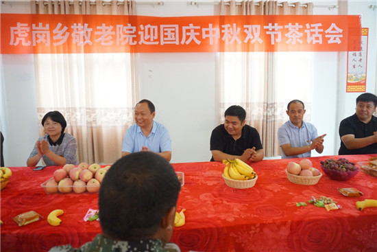 尊老、敬老、愛老是中華民族的傳統(tǒng)美德。9月28日,在國慶、中秋佳節(jié)來臨之際,鄲城縣虎崗鄉(xiāng)敬老院舉辦了迎國慶、中秋雙節(jié)茶話會,豐富了老人們歡慶、團圓的節(jié)日氛圍?;忇l(xiāng)全體黨政班子成員參加了此次茶話會。