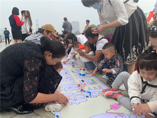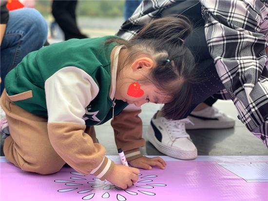 9月30日上午,在周口公園里,一群幼兒園的小朋友通過做游戲,涂畫卷等活動(dòng)歡度國(guó)慶節(jié)。②9