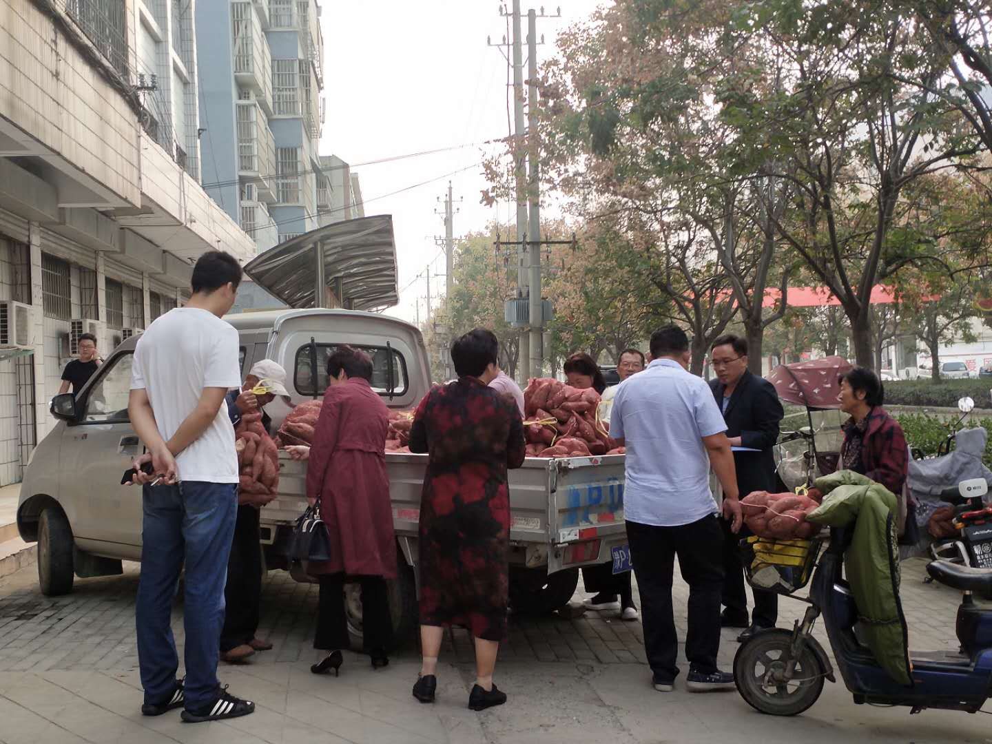 大約一個半小時(shí),一百袋紅薯賣得僅剩下二十多袋了。尹慶華和在商水二高工作的愛人呂春靈聯(lián)系,呼吁二高老師買紅薯、獻(xiàn)愛心。在二高大門口,半個小時(shí)的時(shí)間,聞訊趕來的幾位老師把剩下的紅薯“一搶而光”。