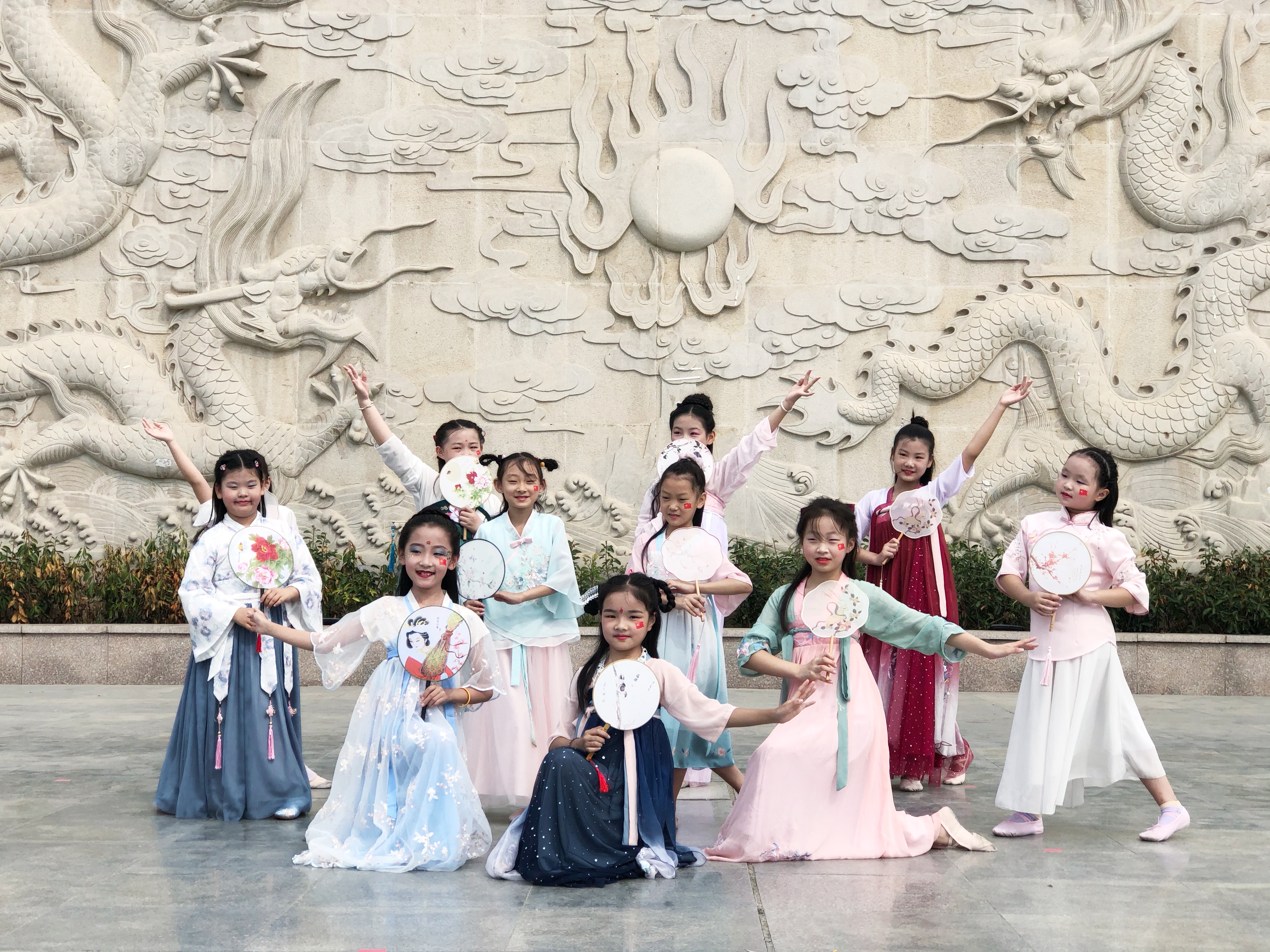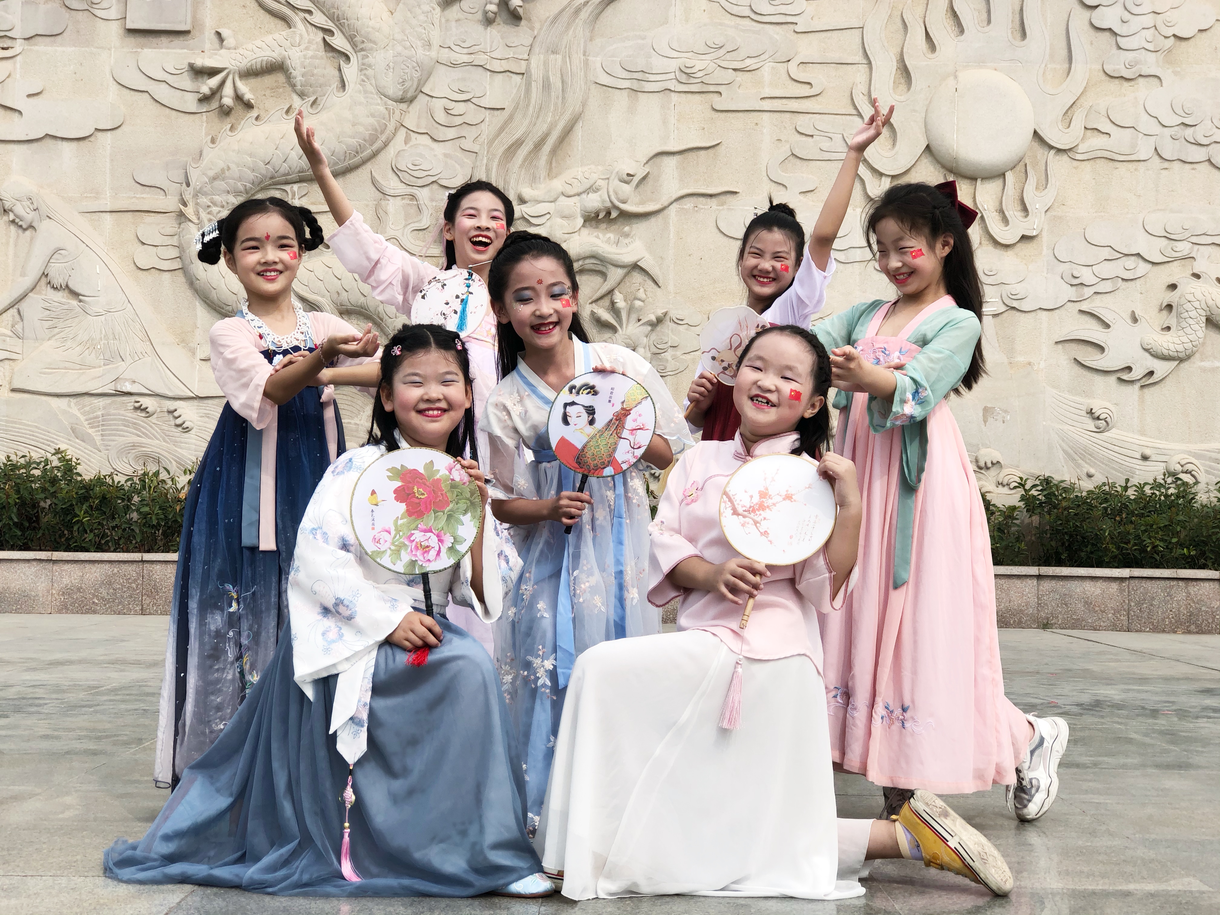 圖片說明:孩子在五一廣場(chǎng)表演節(jié)目 歡度佳節(jié)