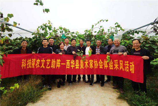 活動期間,高磊帶領創(chuàng)作骨干先后參觀了西華農(nóng)科所新品種新技術生產(chǎn)示范基地,優(yōu)質葡萄園、優(yōu)質桃園、優(yōu)質梨園、優(yōu)質棗園建設基地,西華縣農(nóng)科所“空中結薯”試驗景觀現(xiàn)場等,詳細了解西華農(nóng)業(yè)科研及新品種新技術推廣情況。與會的各位美術創(chuàng)作骨干成員對西華縣農(nóng)科所積極開展農(nóng)業(yè)科學研究,實施科技強農(nóng)戰(zhàn)略,依托“院縣共建”“四優(yōu)四化”大力推廣新品種新技術助力鄉(xiāng)村振興等方面取得的成績給予高度評價。