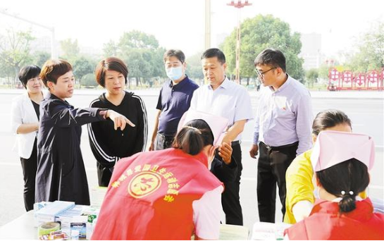 本報訊(記者 徐松 通訊員 侯同廷)國慶節(jié)前夕,鄲城縣衛(wèi)健委根據(jù)國家衛(wèi)生健康委開展2020年“服務(wù)百姓健康行動”全國大型義診活動周的部署,組織4家醫(yī)健集團總醫(yī)院相關(guān)科室醫(yī)護(hù)人員在縣世紀(jì)廣場開展義診活動。副縣長肖煒、縣衛(wèi)健委主任付登霄等到義診現(xiàn)場指導(dǎo)工作(如圖)。