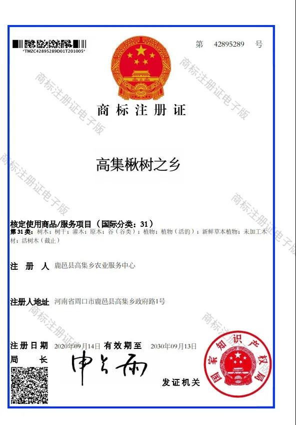 近日,從鹿邑縣高集鄉(xiāng)政府傳出喜訊,由該鄉(xiāng)農(nóng)業(yè)服務(wù)中心注冊的“高集楸樹之鄉(xiāng)”商標(biāo),已獲得國家知識產(chǎn)權(quán)局批準(zhǔn),注冊商標(biāo)證書號為42895289。該商標(biāo)證書顯示,該商品使用服務(wù)的項(xiàng)目為國標(biāo)31類,有樹木、樹干、灌木、原木、植物、活樹木等類型,商標(biāo)地址為河南省周口市鹿邑縣高集鄉(xiāng)政府路1號,商標(biāo)名稱為高集楸樹之鄉(xiāng),成為全省唯一一家以鄉(xiāng)鎮(zhèn)命名的農(nóng)產(chǎn)品商標(biāo)產(chǎn)地。自此,楸樹之鄉(xiāng)高集將會邁著更加矯健的步伐走出河南、走向全國。