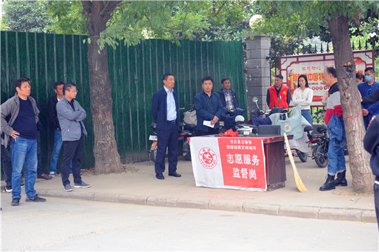 10月12日下午,沈丘縣衛(wèi)健委機(jī)關(guān)全體人員在分包路段召開省級(jí)文明城市創(chuàng)建沖刺會(huì)。副處級(jí)干部、縣衛(wèi)健委主任張治君就“創(chuàng)文”工作和分包路段的環(huán)境衛(wèi)生綜合整治提出要求,全委上下必須進(jìn)一步堅(jiān)定信心,加大工作力度,聚焦短板弱項(xiàng),對(duì)標(biāo)對(duì)表,攻堅(jiān)克難,全力沖刺,全面提升,確保省級(jí)文明城市創(chuàng)建決圓滿成功。圖為沈丘縣衛(wèi)健委機(jī)關(guān)人員在分包路段打掃衛(wèi)生。②18