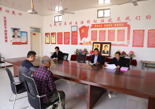 (接到鄭德民躺在病床上布置工作的電話,縣自然資源局駐土趙行政村第一書記王玉杰、土趙行政村主任邱成明心懷悲痛立即召開(kāi)村干部會(huì)議落實(shí)。鄭德民的位置是空的。)