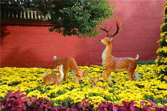 會上,相關(guān)負責(zé)人對當(dāng)前菊展的布展情況進行了通報。截至10月17日,耗時近半個月的第三屆重陽菊展布展工作已經(jīng)結(jié)束,布展面積約24000平方米,總計約40萬盆的金菊已全部布展到位。同時,設(shè)置200個景觀造型,各類觀賞菊150余種,大中小各類精品菊花3000余盆,等待游客的檢閱。