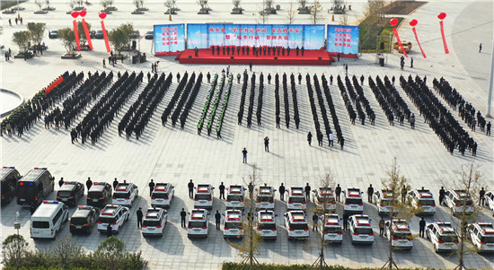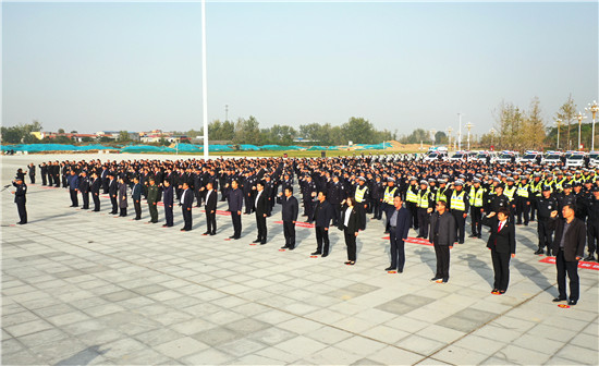 “對(duì)黨忠誠(chéng)、服務(wù)人民、執(zhí)法公正、紀(jì)律嚴(yán)明……”10月22日下午,在商水縣學(xué)習(xí)總書記訓(xùn)詞、保百姓平安暨“暖冬行動(dòng)”誓師大會(huì)上,千余名平安建設(shè)成員單位黨員干部和政法干警的朗朗宣誓聲響徹天空。這標(biāo)志著該縣提升公眾安全感和政法機(jī)關(guān)執(zhí)法滿意度戰(zhàn)役全面打響。縣委書記孔陽(yáng)出席會(huì)議并宣布啟動(dòng)儀式開始。縣委副書記、縣長(zhǎng)田林講話。縣委副書記張峰主持會(huì)議。縣人大常委會(huì)主任李德來(lái),縣政協(xié)主席孫培忠,縣委常委李本磊、王勇、王衛(wèi)東、黃宇飛、王中紅、何永華、崔巖、楊敏等在商的縣處級(jí)領(lǐng)導(dǎo)干部出席會(huì)議。