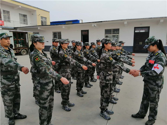 白衣天使愛(ài)武裝,聚焦打贏練武忙。在隊(duì)列訓(xùn)練中,20名女民兵按照教練的口令,一遍一遍的練習(xí)立正、稍息、停止間轉(zhuǎn)法,很快隊(duì)伍隊(duì)列有了起色,基干民兵魏慧娟剛開(kāi)始還有些順拐,兩條腿也不聽(tīng)使喚,教練員劉思嘉一遍一遍為她開(kāi)小灶、糾正動(dòng)作,三番五次,不厭其煩。終于,魏慧娟不順拐了,并通過(guò)加班加點(diǎn)、不斷刻苦的訓(xùn)練,成為了隊(duì)列訓(xùn)練的標(biāo)兵。