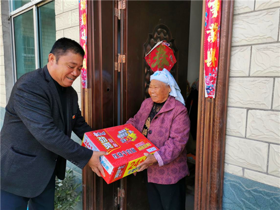 黃玉中說(shuō),重陽(yáng)節(jié)一大早,女兒為他送來(lái)6斤豬肉,并祝他重陽(yáng)節(jié)愉快,他方想起今天是重陽(yáng)節(jié)。等女兒走后,他想著也要看望自己的‘父母’——全村13名五保老人、軍烈屬。于是,黃玉中籌備好物品,帶領(lǐng)村干部,對(duì)13個(gè)五保老人、軍烈屬一一節(jié)日慰問(wèn)。