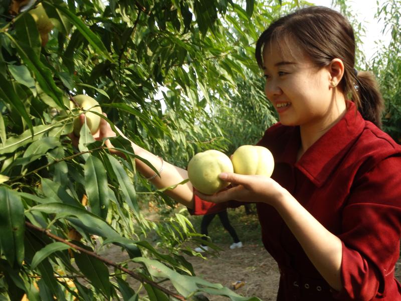 “這個(gè)桃園的冬桃果大、糖分多,所以特意過(guò)來(lái)體驗(yàn)一下采摘的樂(lè)趣。”來(lái)自附近周營(yíng)鎮(zhèn)的游客馬秀梅笑意盈盈。