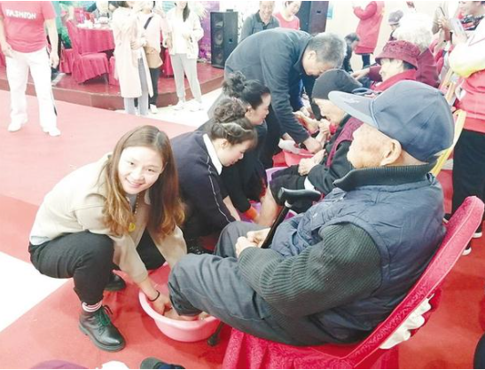 重陽(yáng)節(jié)當(dāng)天,周口市總工會(huì)、周口市教體局、川匯區(qū)供銷(xiāo)社在鴻運(yùn)酒店舉辦“九九重陽(yáng)節(jié) 濃濃敬老情”孝老愛(ài)親活動(dòng),邀請(qǐng)200多名社區(qū)老年人及家屬參加?;顒?dòng)現(xiàn)場(chǎng),家屬為老人進(jìn)行了洗腳(如圖),主辦方安排了精彩的文藝演出,博得觀眾陣陣掌聲,讓社區(qū)老人過(guò)了一個(gè)歡樂(lè)祥和的重陽(yáng)節(jié)。
