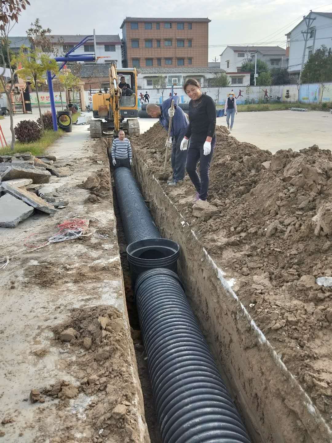 10月27日,西華縣昆山辦事處山子頭小學(xué)院內(nèi),工人們正在加班加點地鋪設(shè)下水管道。
