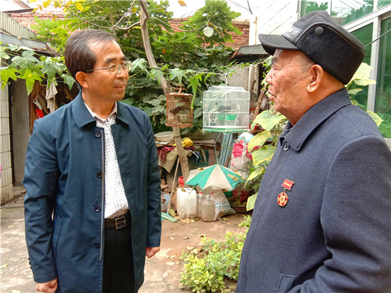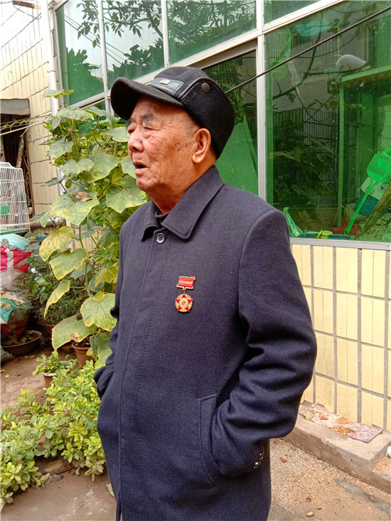快到王景文家時(shí),記者與他取得了聯(lián)系,沒(méi)想到他竟到路口來(lái)迎記者,看到他硬朗的身板和健康的身體,聽(tīng)他說(shuō)話(huà)聲音洪亮、底氣十足,記者還是很欣慰的,畢竟經(jīng)歷了70年的風(fēng)雨洗禮,還能行走自如、聲如洪鐘,的確是寶刀不老。被他迎進(jìn)家,其老伴滿(mǎn)頭銀發(fā),喜瞇瞇地讓記者進(jìn)屋,王老先生去里屋找出了一枚抗美援朝紀(jì)念章,并說(shuō)抗美援朝和平紀(jì)念章等物品都放丟了,找不到了,有些遺憾。記者就開(kāi)門(mén)見(jiàn)山地說(shuō)要聽(tīng)他講講參加抗美援朝的故事,他不好意思地笑了:“講不好,年齡大了,記性不好,有好多事都記不清了……”當(dāng)問(wèn)起他老家是哪里時(shí),王老先生還是打開(kāi)了話(huà)匣子。1934年,他出生在淮陽(yáng)縣劉振屯鄉(xiāng)耿樓大隊(duì)李樓村,由于家境貧寒,他從小就跟隨家人一路逃荒要飯來(lái)到了扶溝,但日子還是艱難,為了能活命,父母無(wú)奈把他送給了扶溝縣城一戶(hù)人家,從此他就成了這戶(hù)人家的孩子,并于1951年5月結(jié)婚。可結(jié)婚沒(méi)幾個(gè)月,縣里就開(kāi)始征兵了。當(dāng)兵離家,要丟下妻子,更何況妻子已有孕在身,他真舍不得;保家衛(wèi)國(guó),是義務(wù)是責(zé)任是擔(dān)當(dāng),他責(zé)無(wú)旁貸。家與國(guó),他毅然選擇去當(dāng)兵。與新婚燕爾的妻子依依惜別,他踏上了行軍的征程。那時(shí)可沒(méi)有車(chē)接送,去往目的地,全靠?jī)蓷l腿,行軍與訓(xùn)練的苦與累難以想象。問(wèn)他不害怕當(dāng)兵打仗嗎?他回答:“不怕!”語(yǔ)氣堅(jiān)定而有力。生活的磨難讓他對(duì)安穩(wěn)的生活有一種渴望,他明白戰(zhàn)爭(zhēng)會(huì)讓國(guó)家陷入混亂不堪的局面,老百姓的生活會(huì)更加艱難,為了祖國(guó)的和平安寧和兄弟姐妹的幸福,他愿意去當(dāng)兵打仗。保家衛(wèi)國(guó)的種子早已種在了他的心里。