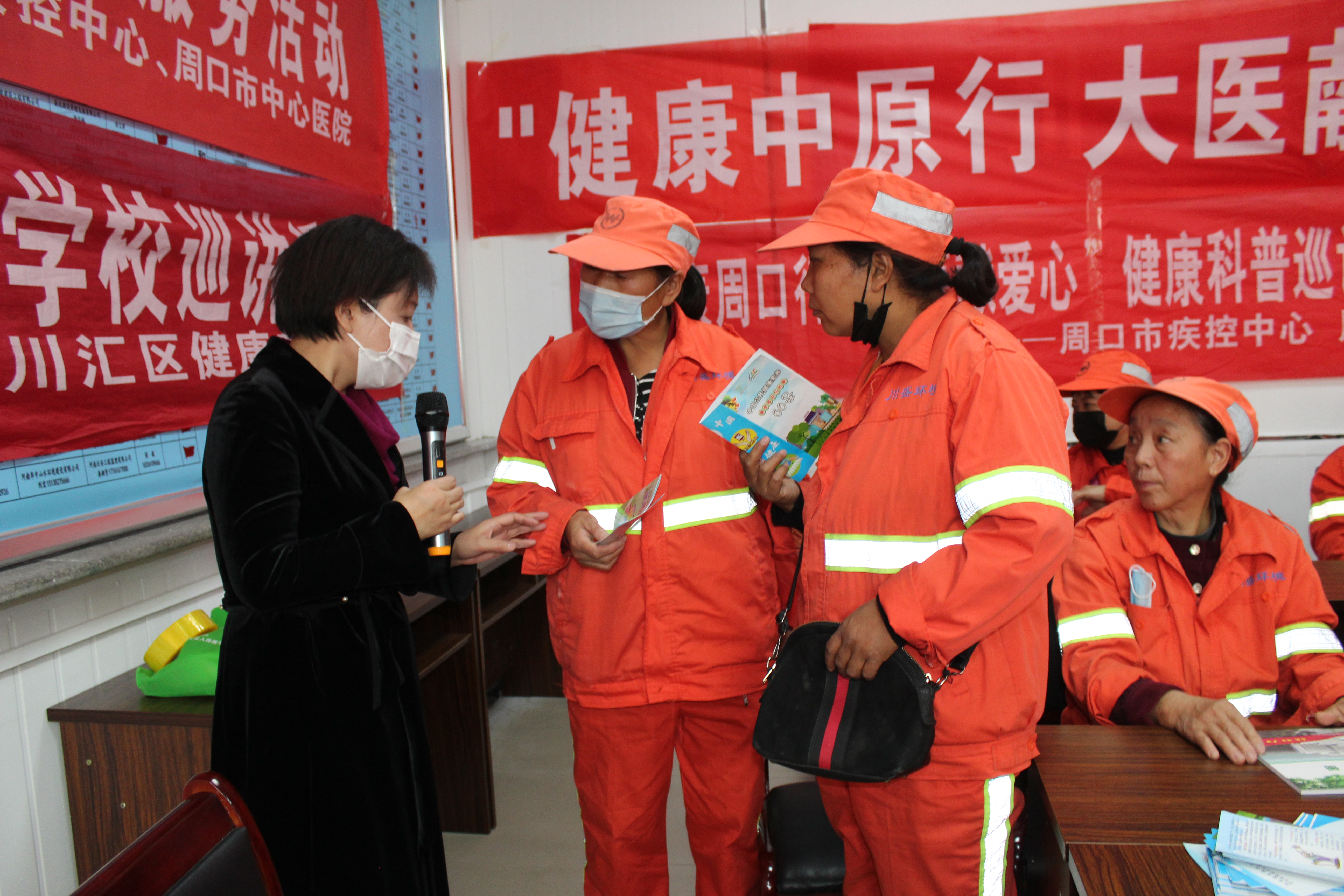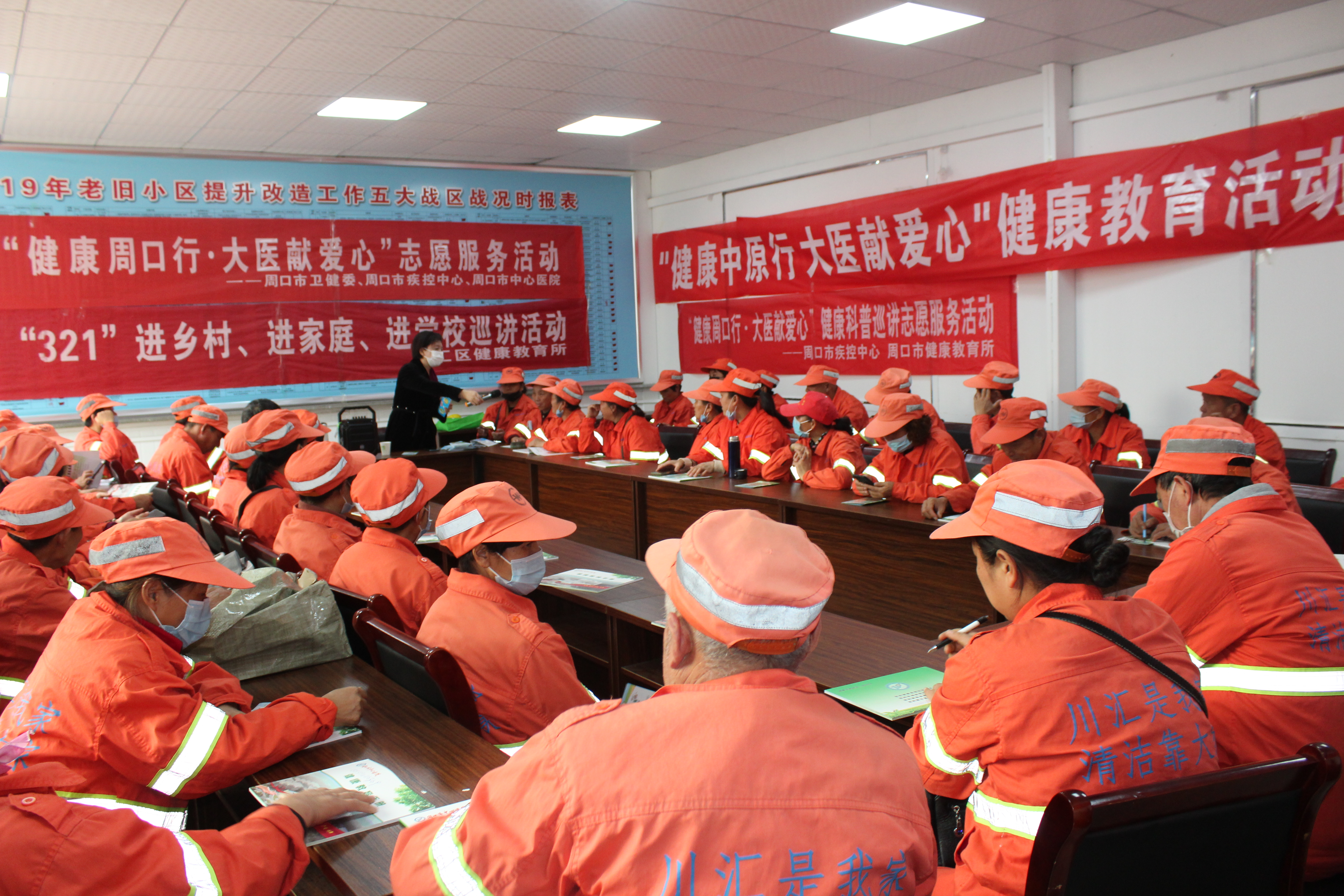 10月29日下午,市、區(qū)衛(wèi)健委組織市中心醫(yī)院、區(qū)健康教育所等單位開展的“健康中周口行、大醫(yī)獻(xiàn)愛心”健康扶貧志愿服務(wù)專項(xiàng)行動(dòng)走進(jìn)川盛環(huán)境公司,為100余名環(huán)衛(wèi)工人開展了“慢性病防治健康素養(yǎng)”知識(shí)講座,普及健康生活知識(shí)和技能。