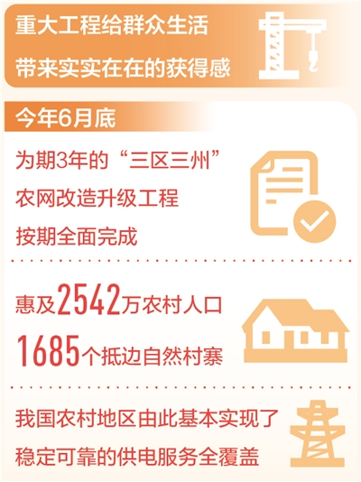 從“用上電”到“用好電”,今年6月底,為期3年的“三區(qū)三州”農(nóng)網(wǎng)改造升級工程按期全面完成,惠及2542萬農(nóng)村人口、1685個(gè)抵邊自然村寨,我國農(nóng)村地區(qū)由此基本實(shí)現(xiàn)了穩(wěn)定可靠的供電服務(wù)全覆蓋。