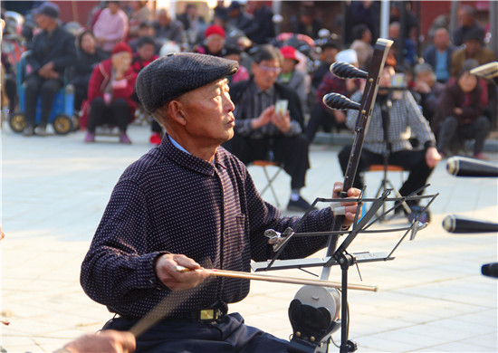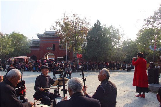 11月10日,戲迷朋友在商水縣郝崗鎮(zhèn)北社村千年古塔旁表演戲曲節(jié)目。初冬時節(jié),暖陽普照,壽圣寺古塔附近的戲迷和樂器愛好者自發(fā)來到千年古塔旁表演戲曲節(jié)目,為當(dāng)?shù)厝罕娝蜕暇实奈幕蟛停M(jìn)一步活躍了農(nóng)村文化生活。①15周口日報·周道客戶端記者付永奇 通訊員 呂耀光 攝