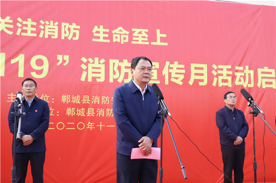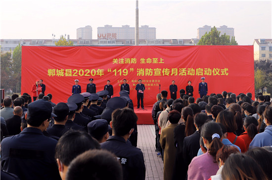 11月11日,鄲城縣在世紀廣場舉行2020年消防宣傳月活動啟動儀式,目的是進一步提高全民消防安全意識,促使“關注消防 生命至上”的主題深入人心,廣泛發(fā)動社會各界關注消防、參與消防,營造良好的宣傳氛圍,預防和減少火災事故發(fā)生,確保人民群眾生命財產(chǎn)安全??h長李全林出席會議并宣布消防宣傳月活動啟動,縣委常委、常務副縣長胡友濤主持會議,縣領導謝超、王彪、陳鳳祥、李素梅及縣公安局政委趙紅建參加會議。