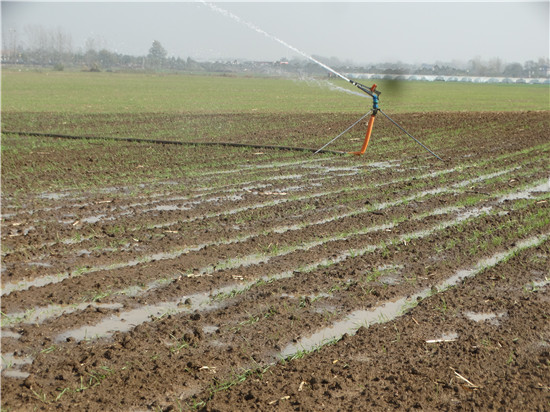 11月12日,暖陽高照。沈丘縣周營鎮(zhèn)孔營村偌大的麥田地塊,當(dāng)?shù)胤N田大戶忙著用噴灌機(jī)械對小麥進(jìn)行噴灌澆水補(bǔ)墑。針對目前部分墑情較差或群體偏小、長勢較弱的麥田,該縣農(nóng)業(yè)農(nóng)村局引導(dǎo)農(nóng)民發(fā)揮現(xiàn)有農(nóng)機(jī)、水資源優(yōu)勢,抓緊噴灌澆水,以沉實土壤,培育冬前壯苗。同時農(nóng)業(yè)專家建議澆水后要注意及時劃鋤,以增溫保墑,破除板結(jié)。③6