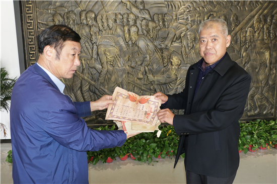 太康籍烈士李鴻勛的兒子李海燕日前向太康縣革命烈士事跡陳列館捐贈(zèng)了其父親李鴻勛烈士生前物品。這些遺物中有烈士用生命換回的“獎(jiǎng)狀”,有見(jiàn)證著烈士成長(zhǎng)足跡的各種證書(shū)、老照片等。