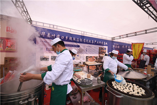 16日上午,在西華縣舉辦的“中國(guó)·西華胡辣湯大賽”現(xiàn)場(chǎng),一邊是48家頂級(jí)胡辣湯店同臺(tái)對(duì)決,滾滾香湯,讓人難耐垂涎。而在賽場(chǎng)外的展銷區(qū),來自西華縣的胡辣湯店免費(fèi)做湯、包子、油條,讓逛大賽的人們隨便吃,過足癮!記者在現(xiàn)場(chǎng)看到,派送美食的店鋪前,排成長(zhǎng)長(zhǎng)的隊(duì)伍,胡辣湯店七八個(gè)師傅,現(xiàn)場(chǎng)忙碌著做美食,人們吃著喝著,大呼過癮,身在胡辣湯之鄉(xiāng),讓人沉醉在美食的盛宴中。記者看到,有的商家還請(qǐng)來“趙本山”“宋丹丹”為大賽現(xiàn)場(chǎng)助陣。①15