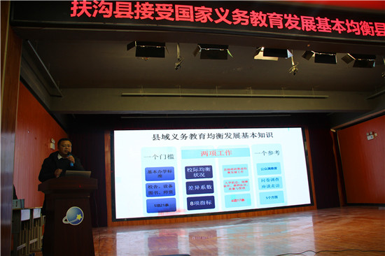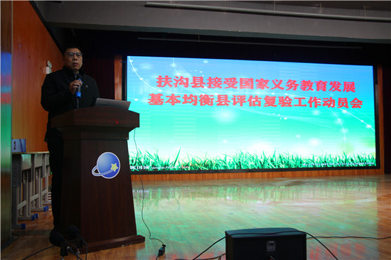 今年是河南省義務(wù)教育發(fā)展基本均衡縣評(píng)估的收官之年,扶溝縣將接受國家的抽查復(fù)驗(yàn)。為進(jìn)一步做好迎接國家義務(wù)教育發(fā)展基本均衡縣評(píng)估復(fù)驗(yàn)工作,11月25日上午,扶溝縣教體局召開了接受國家義務(wù)教育發(fā)展基本均衡縣評(píng)估復(fù)驗(yàn)工作動(dòng)員會(huì)。教體局全體領(lǐng)導(dǎo)班子、股室負(fù)責(zé)人、包鄉(xiāng)人員,各鄉(xiāng)鎮(zhèn)(街道)中心校校長、普教專干、初中校長及迎驗(yàn)學(xué)校校長300余人參加會(huì)議。